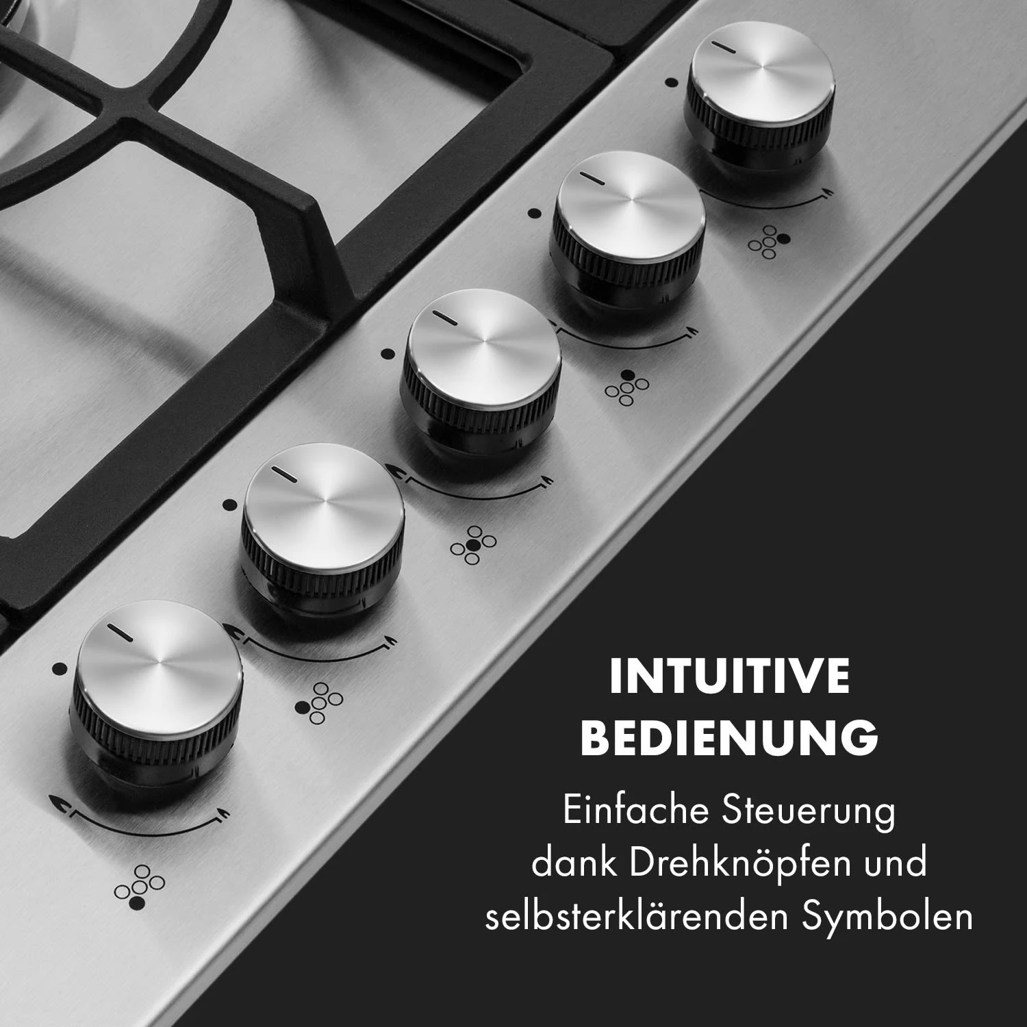 Auf dem geräumigen Kochfeld befinden sich fünf hochwertige Sabaf-Brenner, die mit einer Leistung von jeweils einmal 3,6 kW, 3,0 kW und 1 kW sowie zweimal 1,75 kW ordentlich einheizen. Da es sich hierbei um unterschiedliche Brenner-Größen handelt, ist das Ignito 5 Zonen Gaskochfeld für jede erdenkliche Mahlzeit geeignet. Dabei ist die Bedienung dank der selbsterklärenden Symbole an den großen Drehknöpfen absolut intuitiv, die Hitzezufuhr kann während des Kochvorgangs immer wieder direkt angepasst werden. Zusätzliches Feuer zum Entzünden ist nicht nötig: Die Gasflamme wird einfach per SnapJetIgnition entfacht. Die Brenner verteilen die Hitze gleichmäßig in der Mitte und an den Rändern der Töpfe oder Pfannen, alles wird perfekt gegart. Die drei abnehmbaren Kreuze aus massivem Gusseisen sind für beinahe alle Arten von Kochgeschirr geeignet und sitzen passgenau und kippsicher über den Flammen. Ein zusätzlicher Aufsatzring kann beim Kochen mit einem Wok verwendet werden und leistet hervorragende Arbeit.