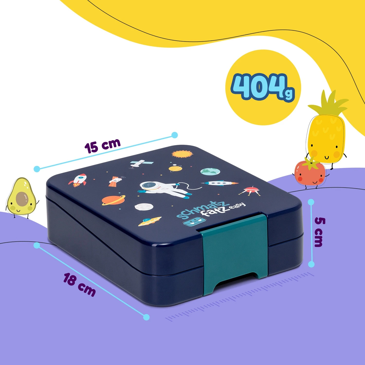 Die schmatzfatz easy Snackbox verfügt über einen separaten Innendeckel. Er verschließt die einzelnen Fächer der Box sicher und luftdicht. Durch die einzeln abegedichteten Fächer eignet sich diese Vesperbox deshalb sehr gut für dickflüssige Speisen. So kannst du deinen Kindern den Tag mit Apfelmus, Griessbrei oder Joghurt versüßen. Oder du gibst ihnen einfach das Müsli mit auf den Weg! Dank den sicheren Verschlussklappen vorne bleibt alles in der Box – bis zum Verzehr.