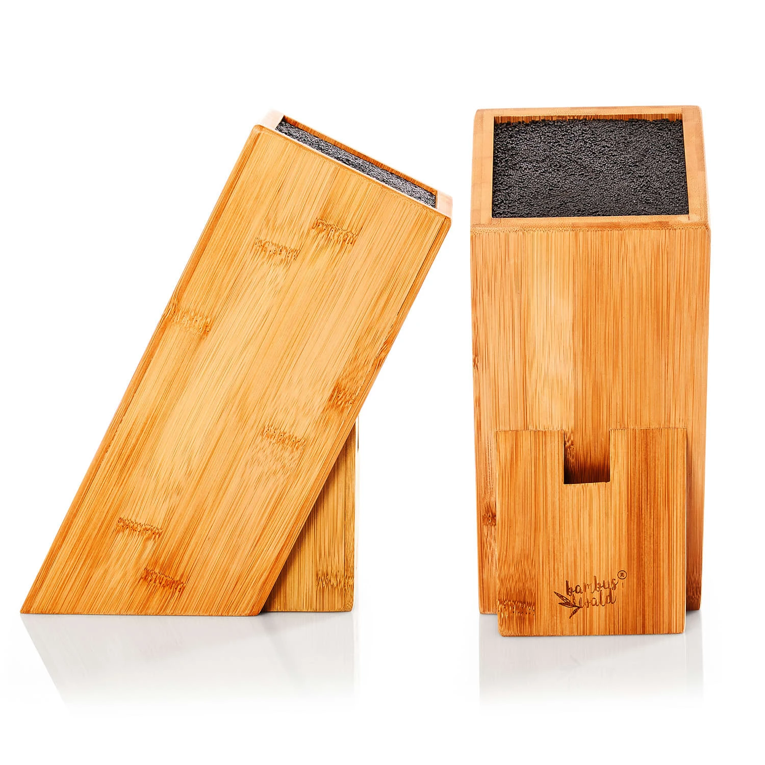 Sicher, praktisch, nachhaltig. Im Klarstein Messerblock sind deine Messer und Küchenutensilien bestens aufbewahrt. Der innovative Einsatz aus PET-Borsten erlaubt das Aufbewahren von 5 bis 10 Messern, Scheren, Wetzstählen und ähnlichem bis 20 cm Länge. Dabei kannst du die Messer ganz nach Belieben in den schrägen Block stecken. Der Einsatz ist herausnehmbar und kann ganz einfach in der Spülmaschine gereinigt werden. Ästhetisch ansprechend und nachhaltig präsentiert sich der Block in einer Hülle aus stabilem Bambus.