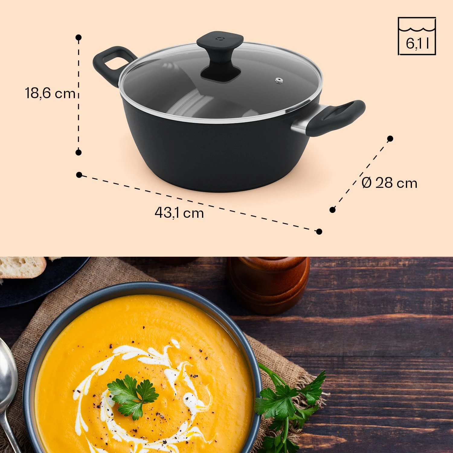 - Fassungsvermögen: 6,1 Liter