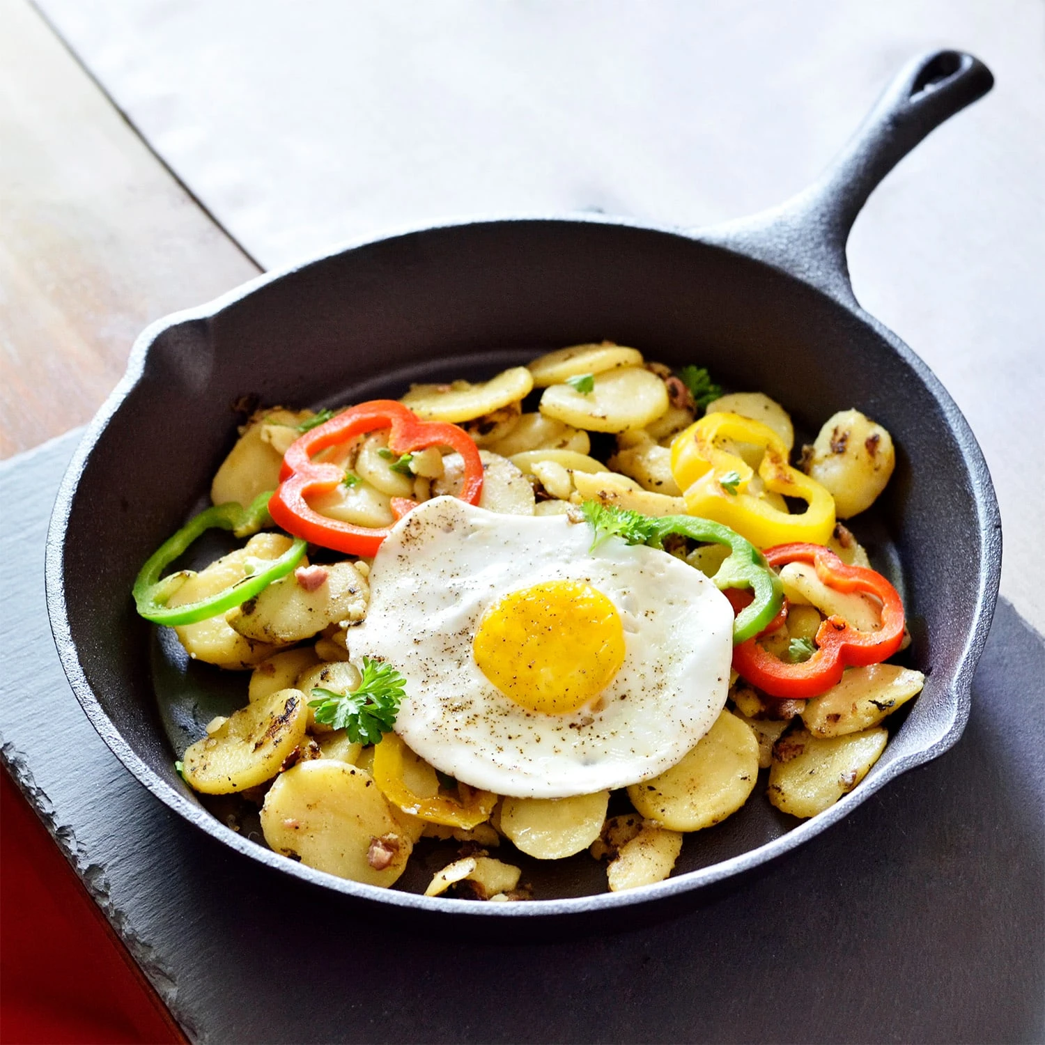 Langlebig und vielseitig einsetzbar: Die Klarstein Parthenaise Bratpfanne ist aus robustem Gusseisen gefertigt, das für eine optimale Hitzeverteilung sorgt. Egal ob auf dem heimischen Herd, im Backofen oder beim Outdoor-Kochen ist sie ideal für Steaks, Würstchen, Bratkartoffeln sowie Gemüse und Eierspeisen. Die Parthenaise ist bereits voreingebrannt und sofort einsatzbereit. Für ein einfaches Handling liegt der Bratpfanne noch eine Griffschutzhülle aus Silikon bei.