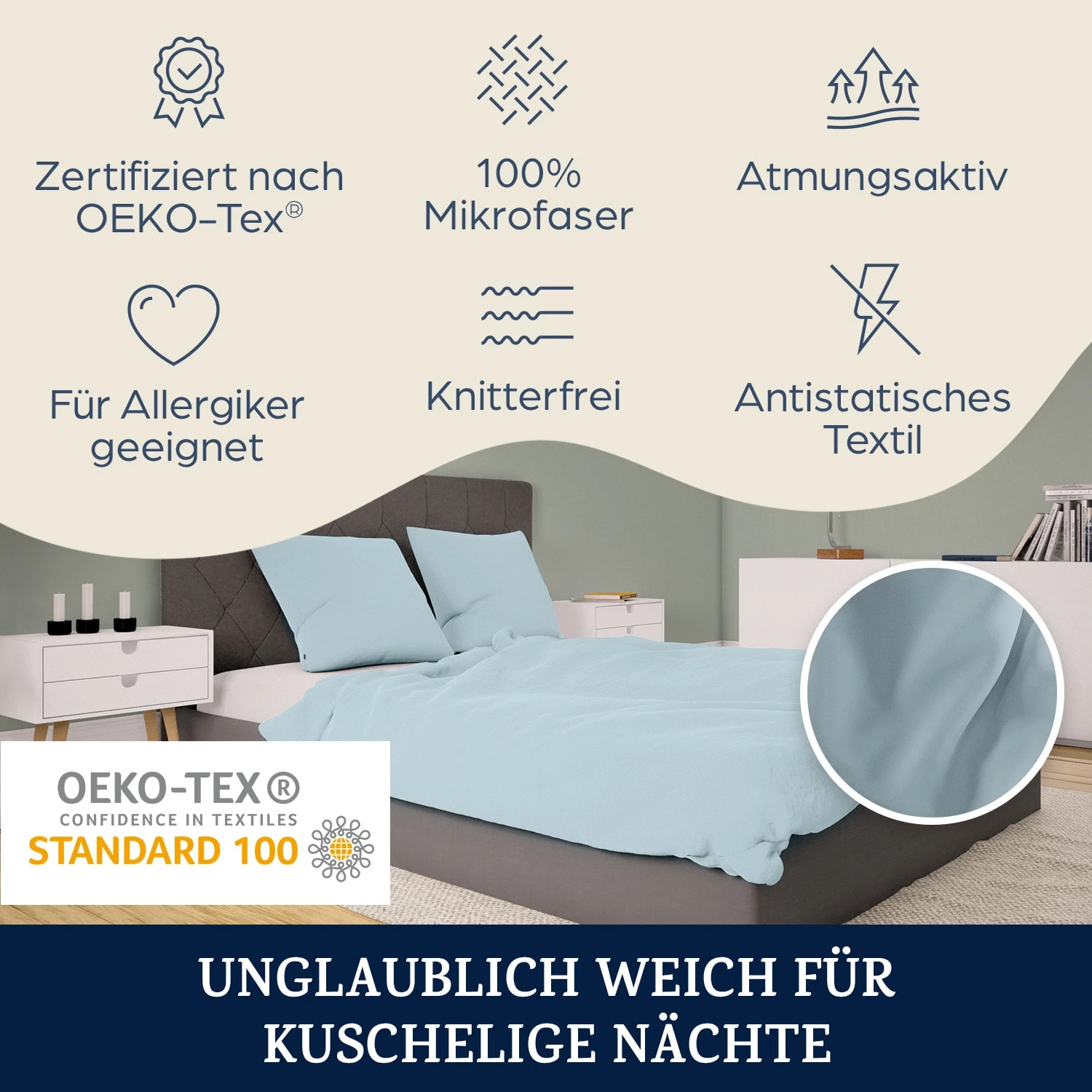 - Hygienisch waschbar bei 60 Grad